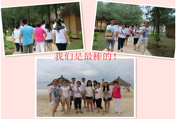 25日早上9點(diǎn),我們集中在中石化大廈正門,身著鮮艷的衣服,乘坐旅游巴士歡快地前往美麗的茂名電白的浪漫海灘。一路上,大家歡聲笑語,工會(huì)小組長(zhǎng)黃永俊代表天河分公司預(yù)祝拓展活動(dòng)圓滿成功高歌一曲,天河分公司領(lǐng)導(dǎo)黃總做了拓展活動(dòng)正式啟動(dòng)的發(fā)言,客服主管黃殿光代表客服獻(xiàn)上笑話,整個(gè)車內(nèi)充斥著歡快和諧的氛圍。經(jīng)過了約4小時(shí)的車程,到達(dá)茂名浪漫海灘度假區(qū),撲面而來的是大海、沙灘、漁船、椰林、綠茵草地,藍(lán)天白云,一間間具有巴厘島、馬爾代夫特色的茅草屋矗立在沙灘上,令人仿佛置身于巴厘島風(fēng)情、馬爾代夫的風(fēng)景。小伙伴們都?xì)g呼起來了。