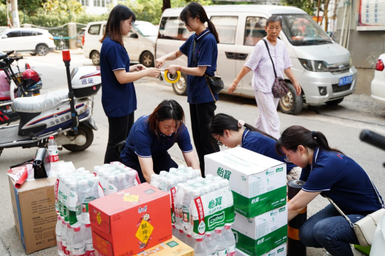 8月17日,為助力社區(qū)疫情防控,湖北紅海協(xié)同洪山區(qū)工商聯(lián)和卓刀泉街道組織開展了慰問活動,總經(jīng)理饒將將帶領(lǐng)公司人事總監(jiān)毛宏靜、財務(wù)經(jīng)理匡花、直聘團隊來到洪山區(qū)關(guān)西社區(qū),慰問高溫季節(jié)堅守在創(chuàng)建文明城、疫情防疫等一線崗位的社區(qū)工作人員,捐贈“夏日送清涼”物資礦泉水、飲料20件,防疫物資5件。