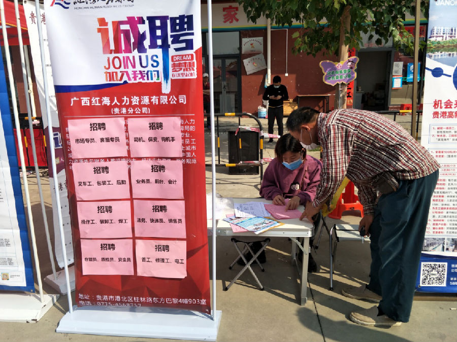 招聘工作開展開始,貴港紅海同志在招聘會現(xiàn)場進(jìn)行布點(diǎn)等準(zhǔn)備活動,隨后村民紛紛前往咨詢工作崗位,紅海同志熱情接待并一一解答村民所咨詢的問題,同時(shí)也積極主動向村民介紹工作崗位并做好招聘人員信息記錄。