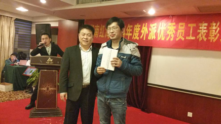 優(yōu)秀外派員工發(fā)言完畢,聯(lián)歡會進入頒獎環(huán)節(jié)。湖南紅海毛雙喜總經(jīng)理、文健副總經(jīng)理、星沙分公司陳婷總經(jīng)理、長沙分公司總劉宇副總經(jīng)理分別給優(yōu)秀外派員工頒發(fā)榮譽證書,獲獎的員工臉上都露出了幸福、喜悅的笑容。