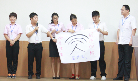 圖14: “噔噔噔” ,終于等到我們 “高升隊”登場啦!我們的口號是“風雨同路,合作共贏”,望紅海業(yè)績蒸蒸日上,各位同仁步步高升!