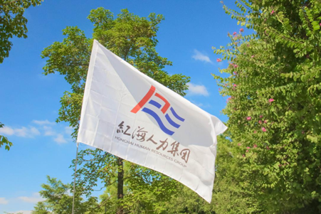 (紅海人力集團(tuán)旗幟在藍(lán)天中飄揚(yáng))